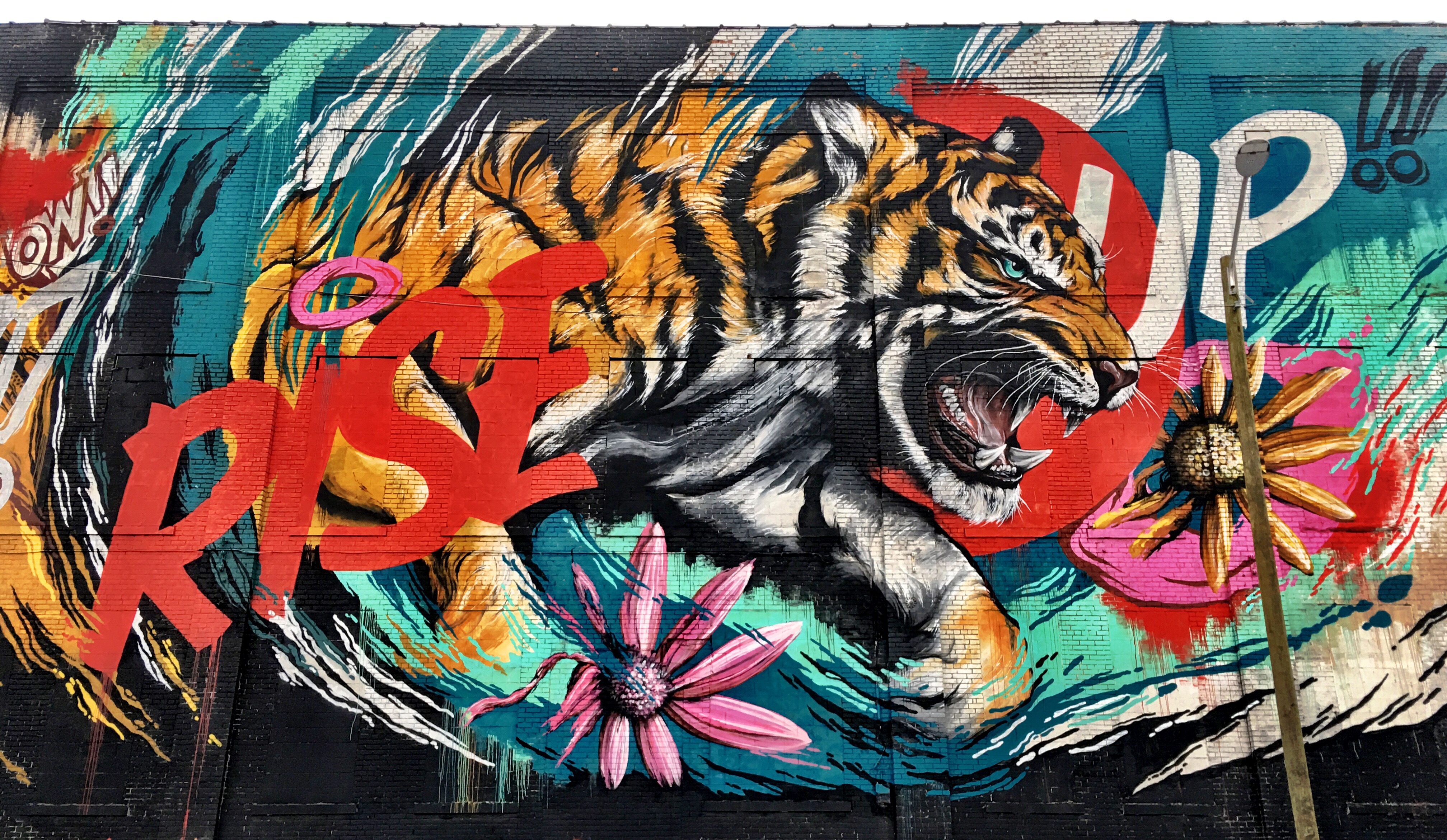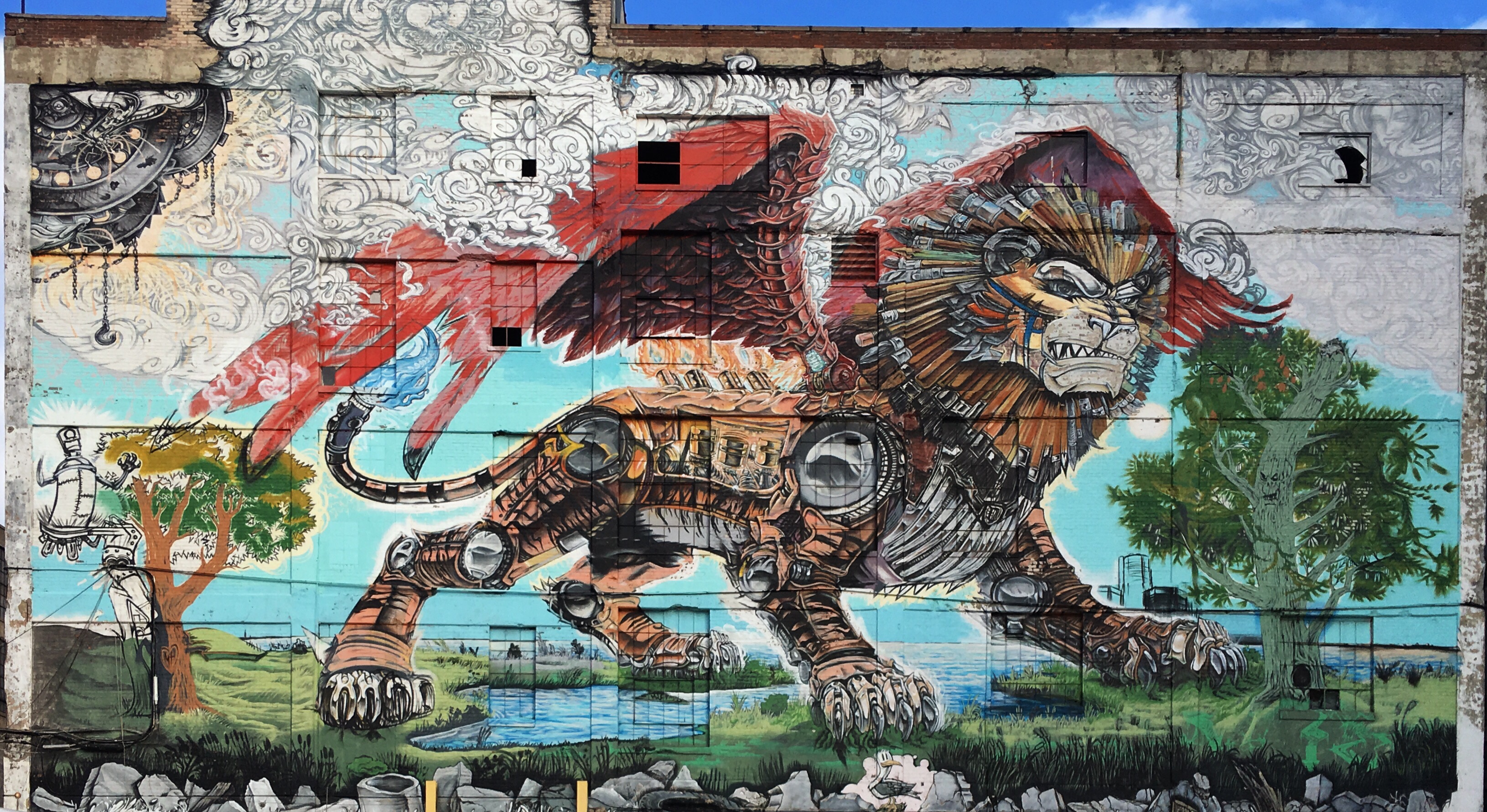 In the thriving and bustling Eastern Market every twist and turn seems to produce another beautiful mural or piece done by the talented teams of local artists. Some walls display sprawling gorgeous landscapes and fantasy worlds while others make a compelling statement to each visitor.