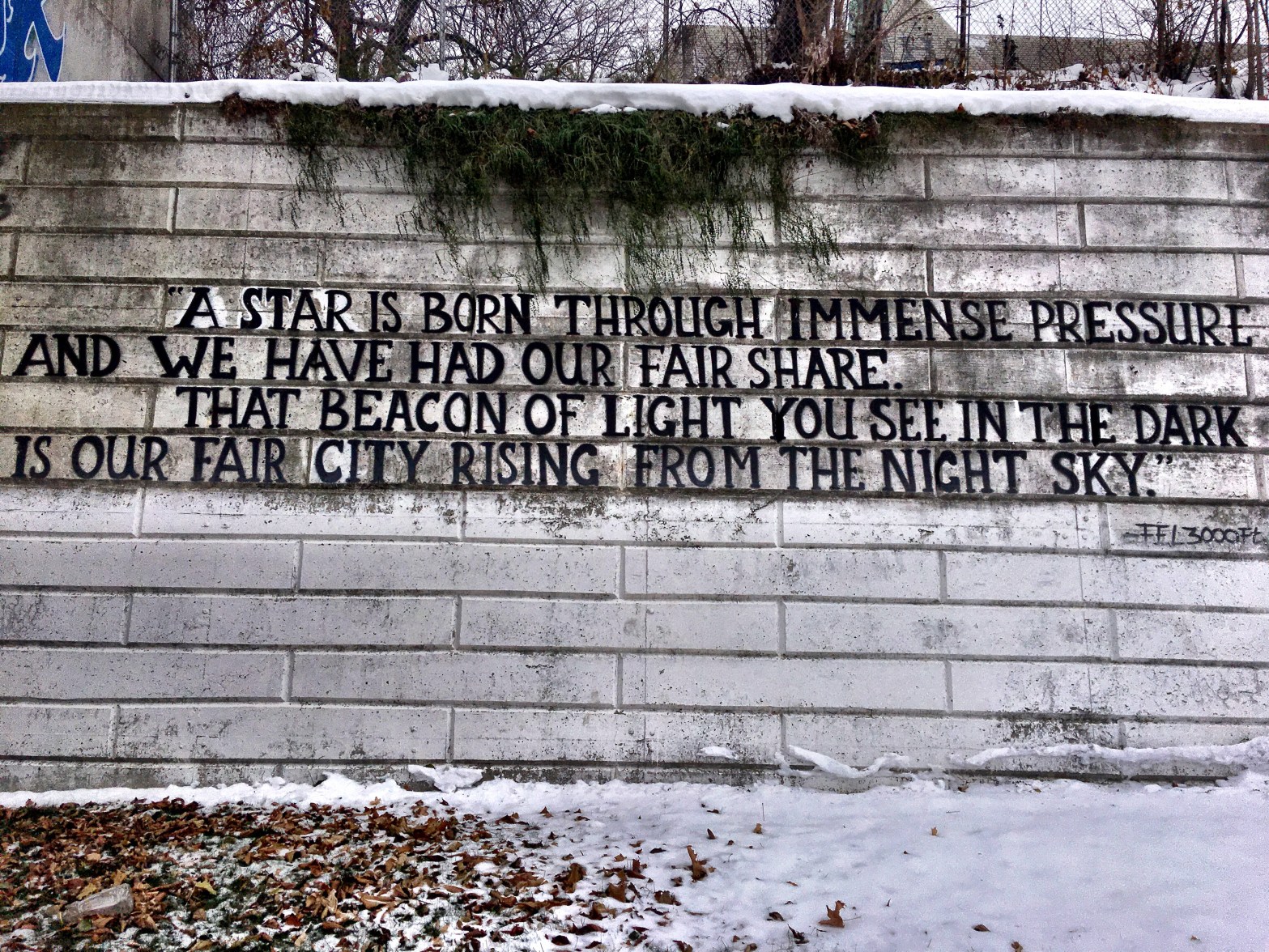The Dequindre Cut Greenway is a converted below street level rail line transformed into an art lined walking trail. The art of the greenway stretches more than a mile dotting the sides of the pedestrian walkway creating a beautiful and authentic view of the city. No longer an abandoned railway, the cut now showcases the work of local and visiting artists and students honing their craft while experimenting with all of the environmental canvases available to them. Bridge support structures, walls, building facades and any surface is brought to life with the artist’s vision.